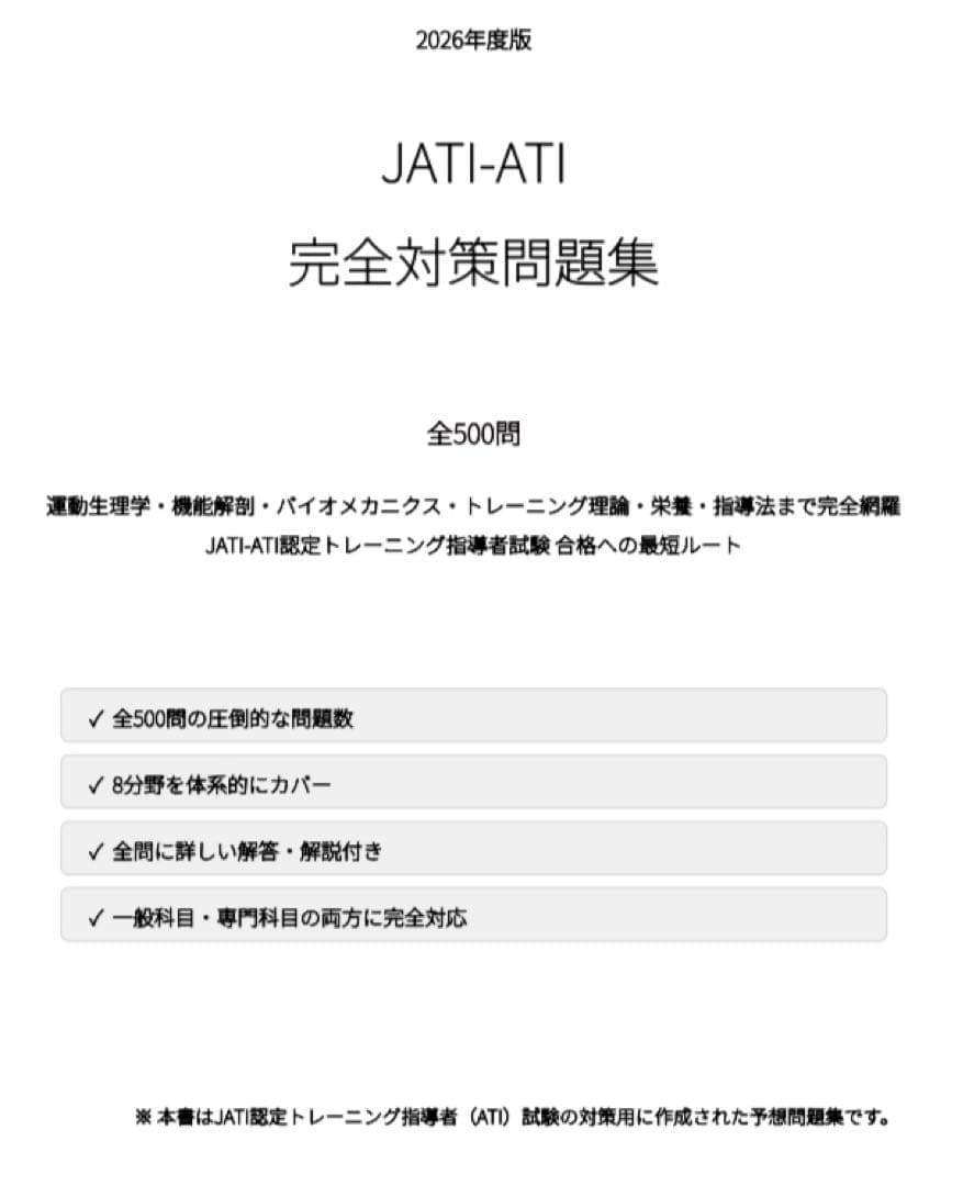 【JATI-ATI 】試験対策問題集500問 解答解説付き