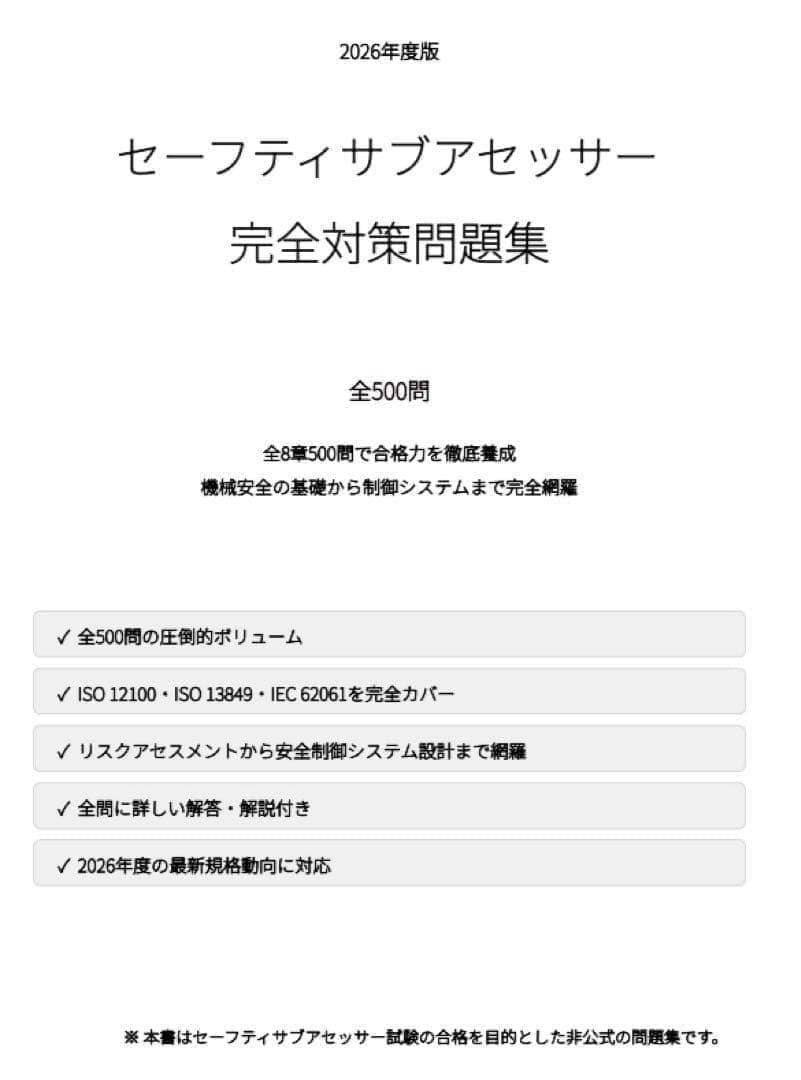 本問題集は、セーフティサブアセッサー試験対策に必要な知識を体系的に整理した