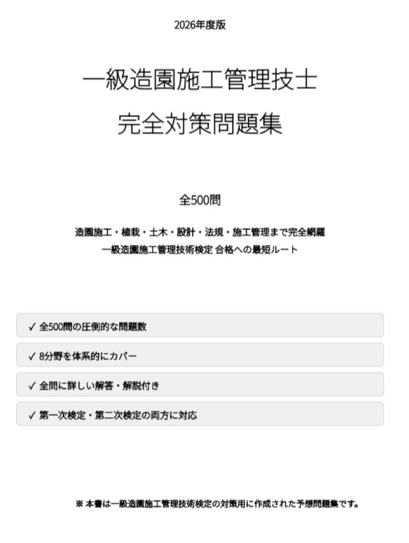 【一級造園施工管理技士】試験対策問題集500問 解答解説付き