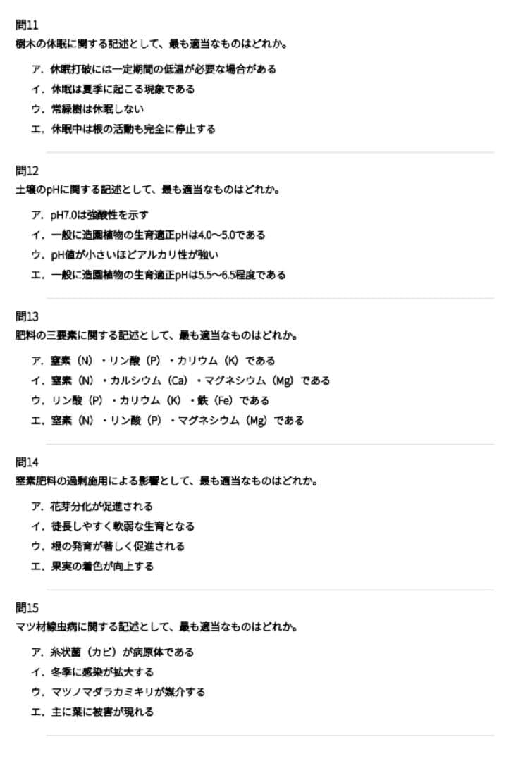 植物、造園材料、施工計画、工程、安全、関係法令まで、試験範囲を一通り確認しやすい構成です。