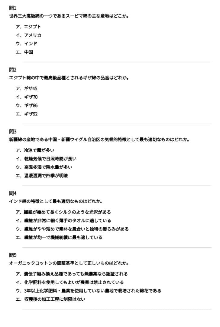 【タオルソムリエ】試験対策問題集300問 解答解説付き