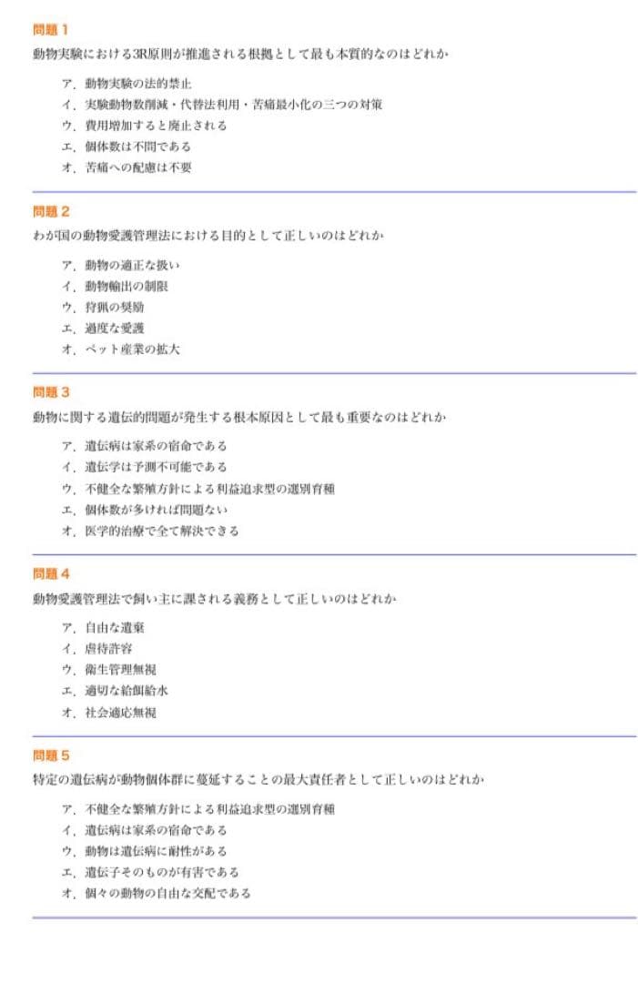 特に「動物は尊厳ある存在である」という思想をベースにした出題が多く、単なる知識ではなく“考え方”まで整理できます。