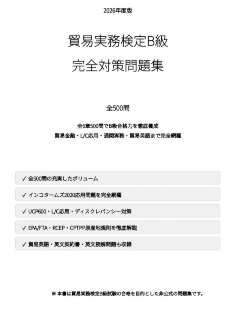 【貿易実務検定B級】試験対策問題集500問 解答解説付き