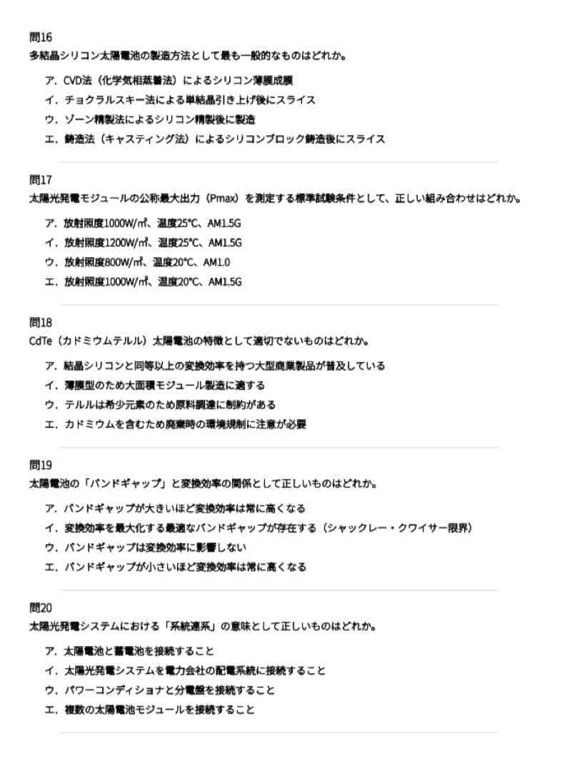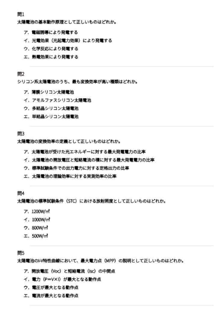 本問題集は、太陽光発電アドバイザー試験の学習範囲を体系的に整理した