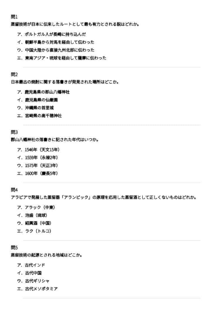 【焼酎検定2級】試験対策問題集500問 解答解説付き