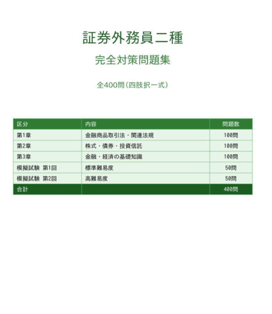 【証券外務員二種】試験対策問題集300問 + 模擬試験50問 x 2回計400問