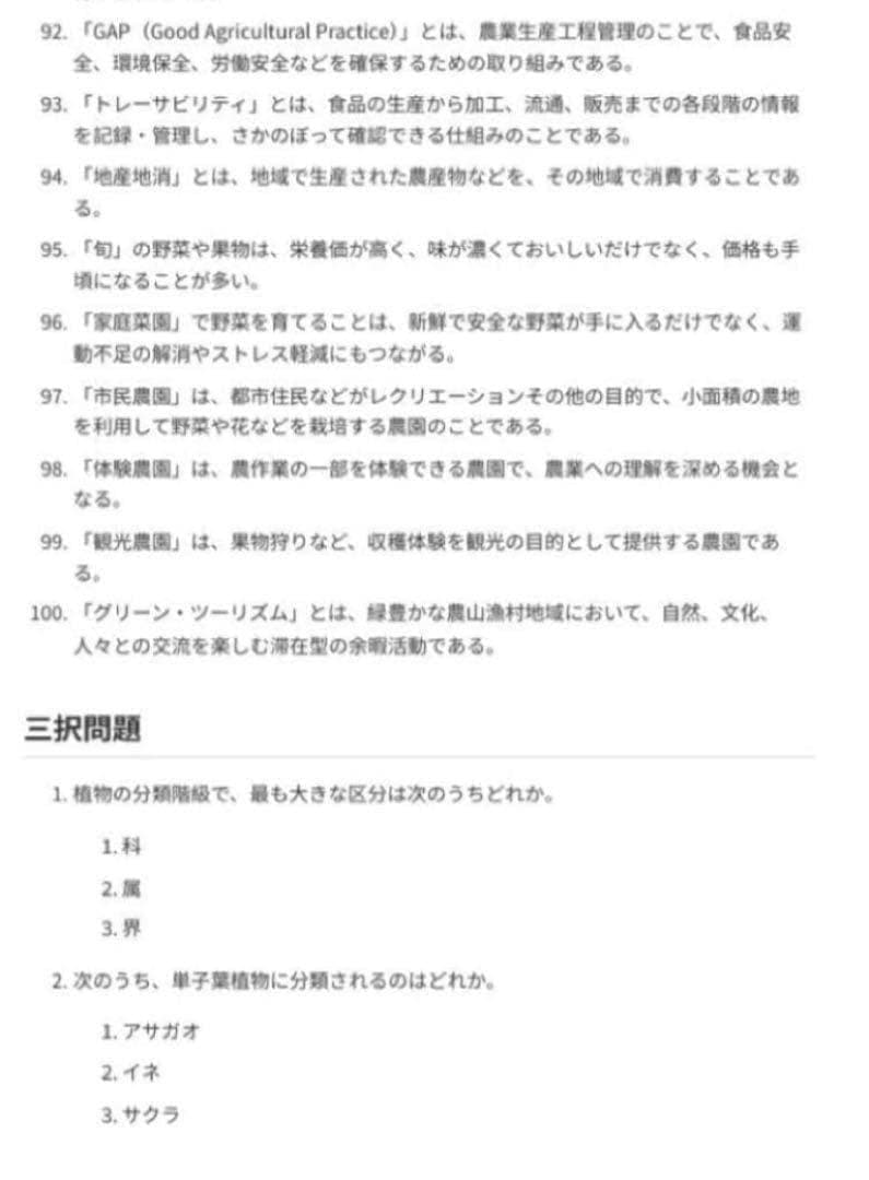 本問題集は、植物の基礎知識から栽培方法、病害虫対策、環境・緑化活動、園芸文化までを網羅した 200問の演習問題 を収録しています。