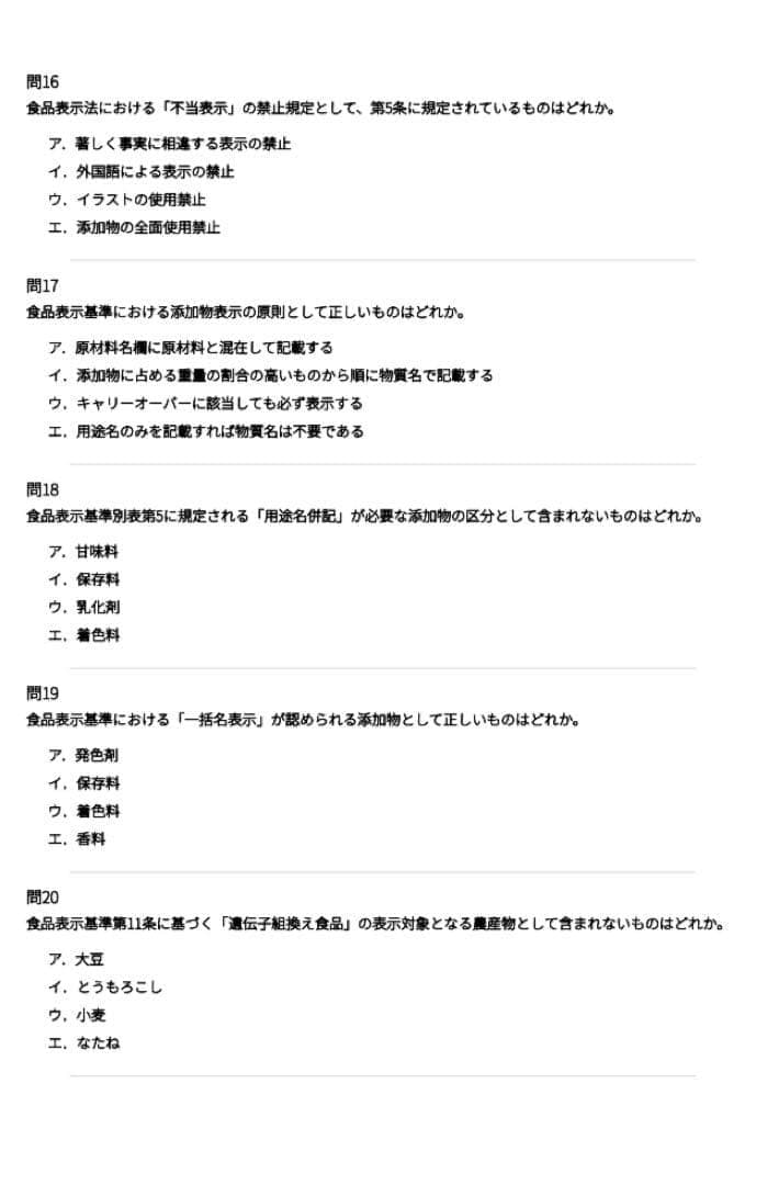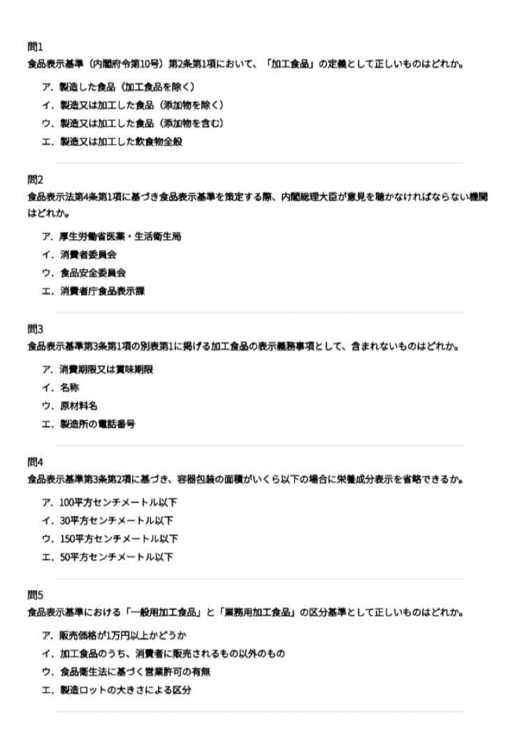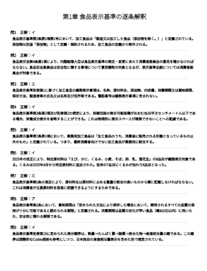 第2章 加工食品表示の高度判断(65問)