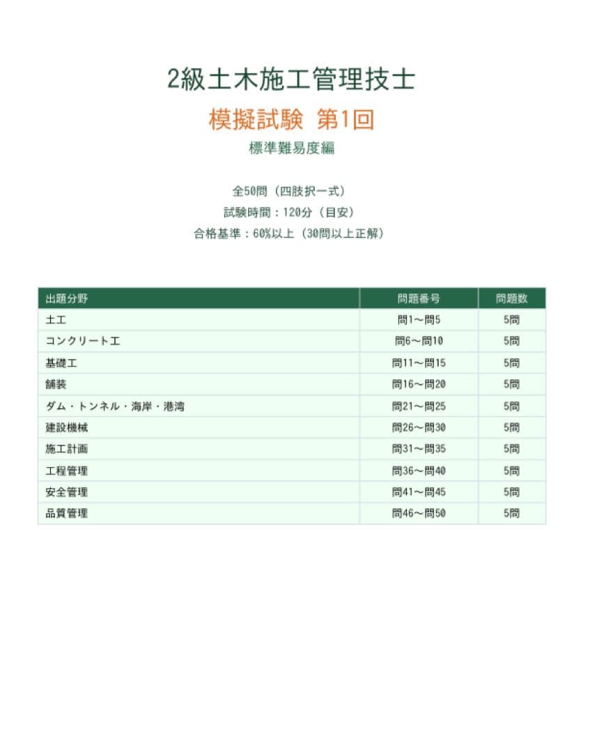 * 模擬試験:第1回・第2回 (各50問)