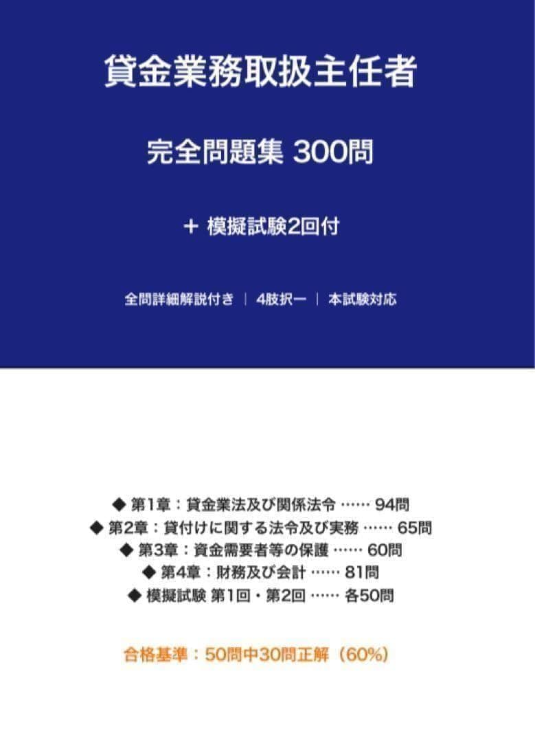 【貸金業務取扱主任者】試験対策問題集300問+模擬試験50問×2計400問
