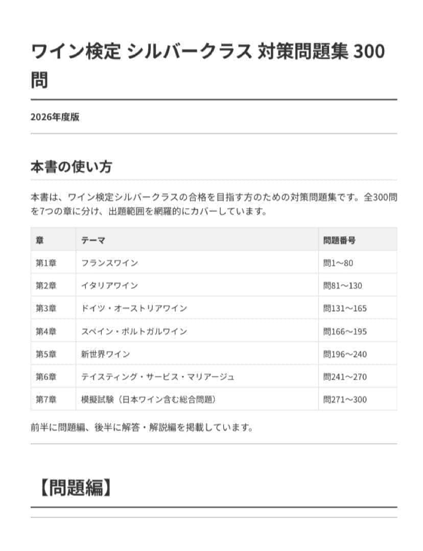 【ワイン検定】シルバークラス 試験対策問題集300問 解答解説付き2026年度版