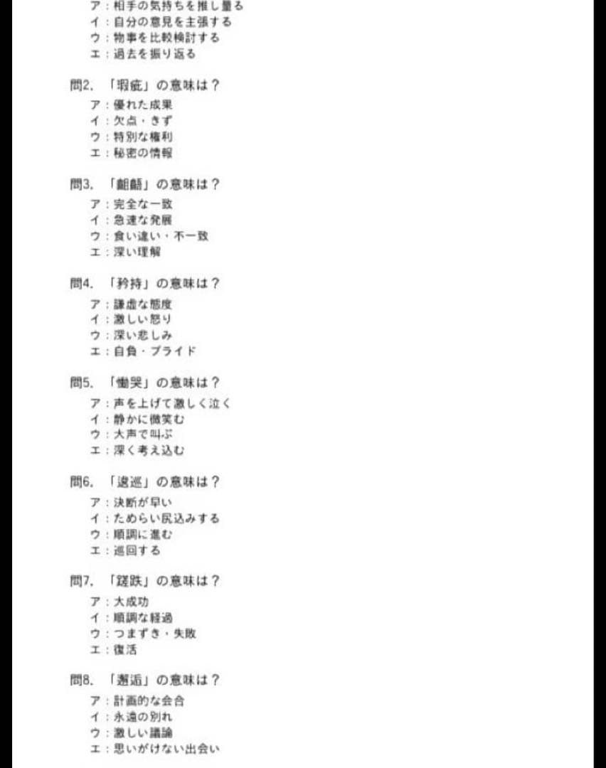 ・ 「忖度」「瑕疵」「齟齬」といった難読語や語彙の意味、二語関係、ことわざなどの知識問題を強化します。