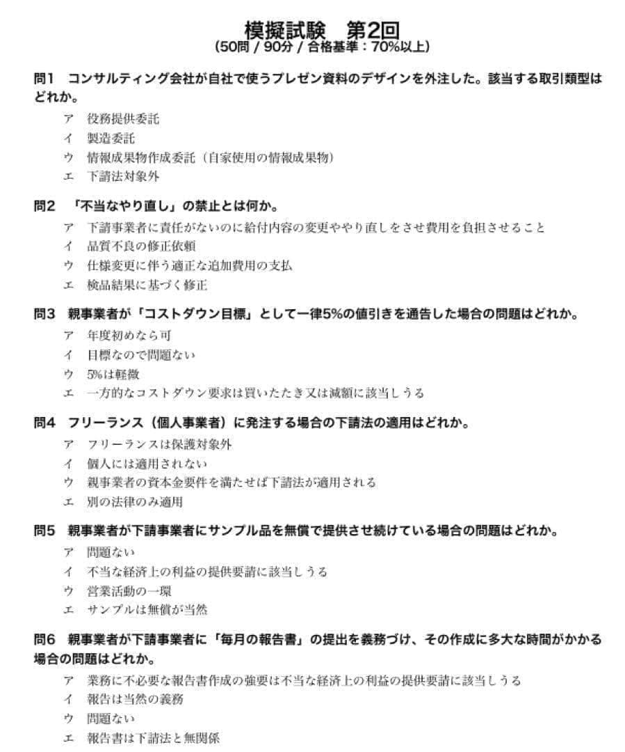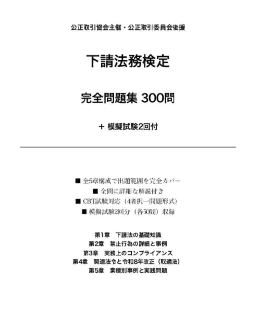 【下請法務検定】試験対策問題集400問(300問+模擬試験50問×2)解答解説付