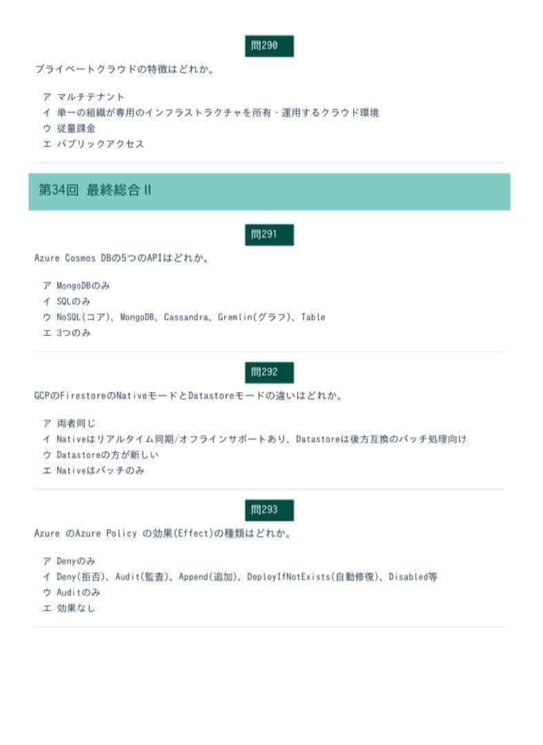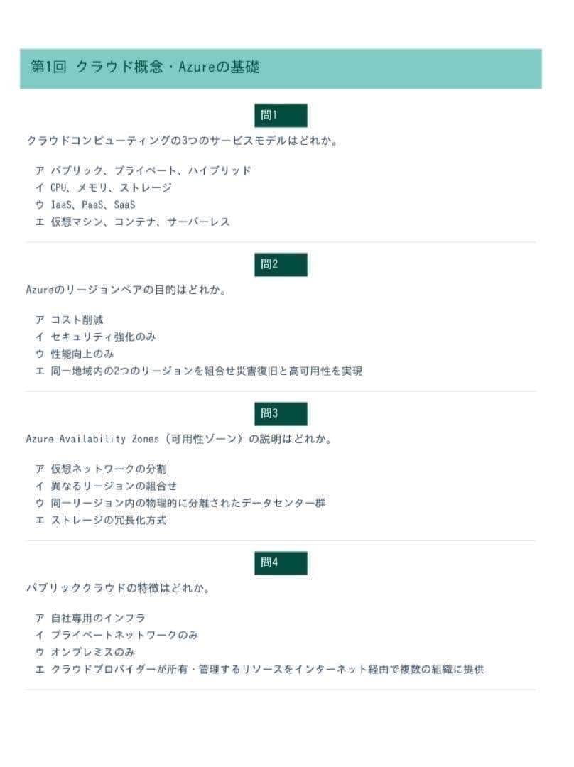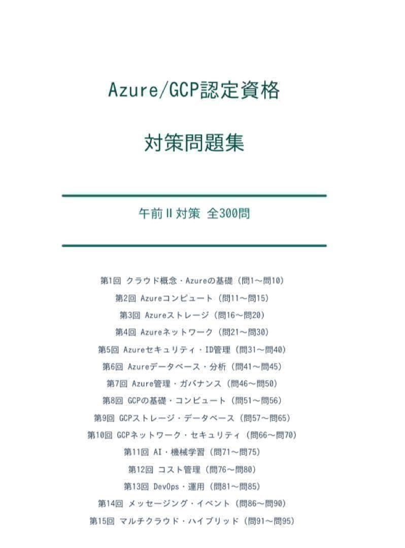 本問題集は、AzureとGCPの両雄を網羅し、基礎概念から高度なセキュリティ・ガバナンスまでをカバーした全19回・300問(4択形式)の集中対策教材です。