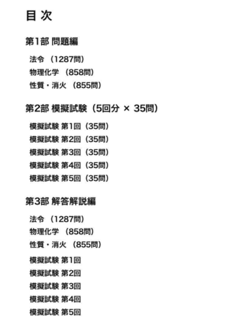 本問題集は、乙種第4類試験の出題範囲を徹底的に網羅した全3175問の大規模演習型教材です。基礎事項の確認から、ひっかけ選択肢への対応力強化まで、反復演習によって得点力を安定させる構成としています。