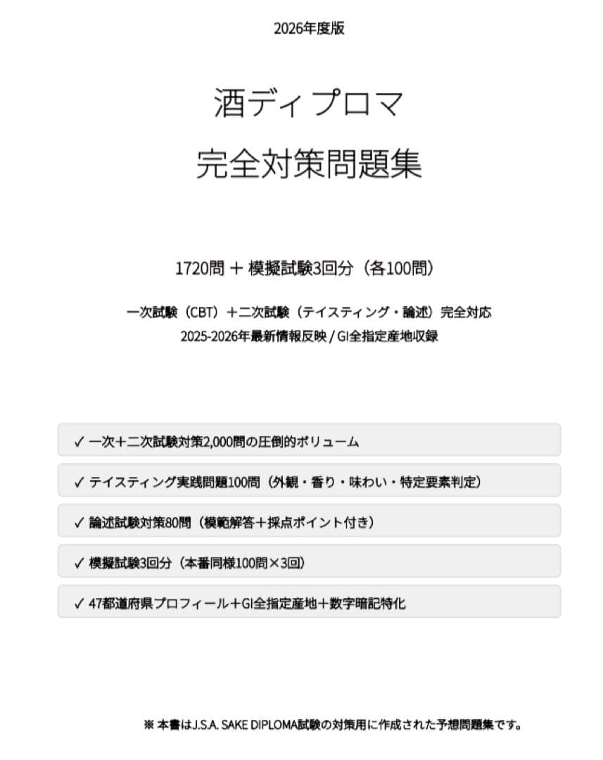 2026年度版 酒ディプロマ完全対策問題集1720問 657ページ資格保持者作成