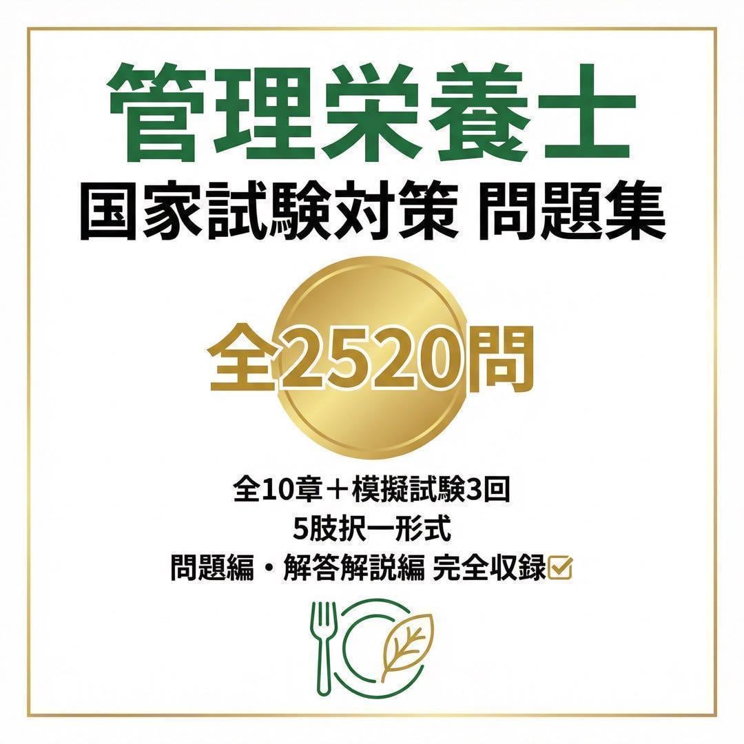 【管理栄養士】国家試験対策 問題集全10章全2520問解答解説付き 827ページ