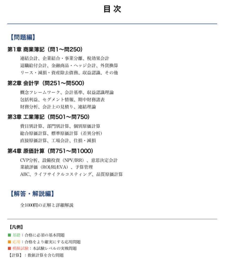 【日商簿記1級】試験対策問題集1000問 解答解説付き