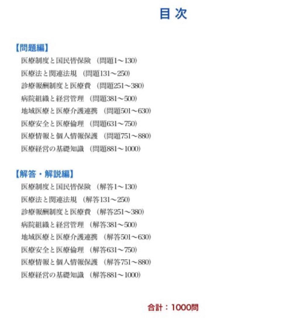 【医療経営士2級】試験対策問題集 全8章・1000問 解答解説付き 300ページ