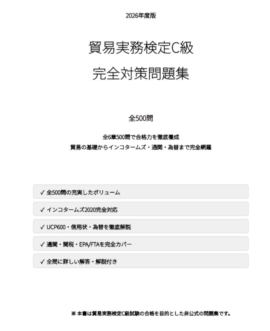 【貿易実務検定C級】試験対策問題集500問 解答解説付き