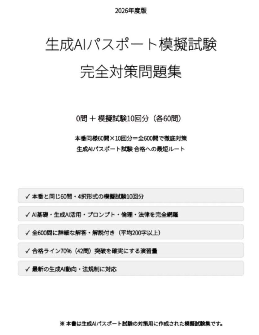 【生成AIパスポート】模擬試験×10 〝600問〟解答解説付 2026年シラバス