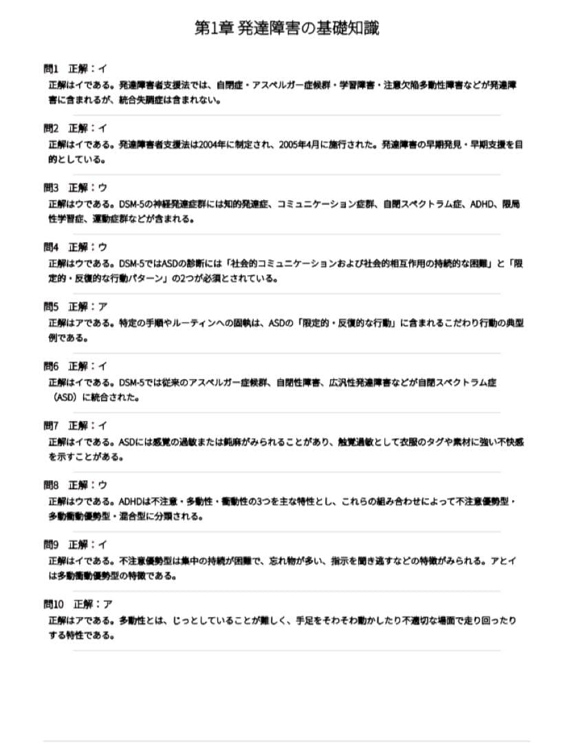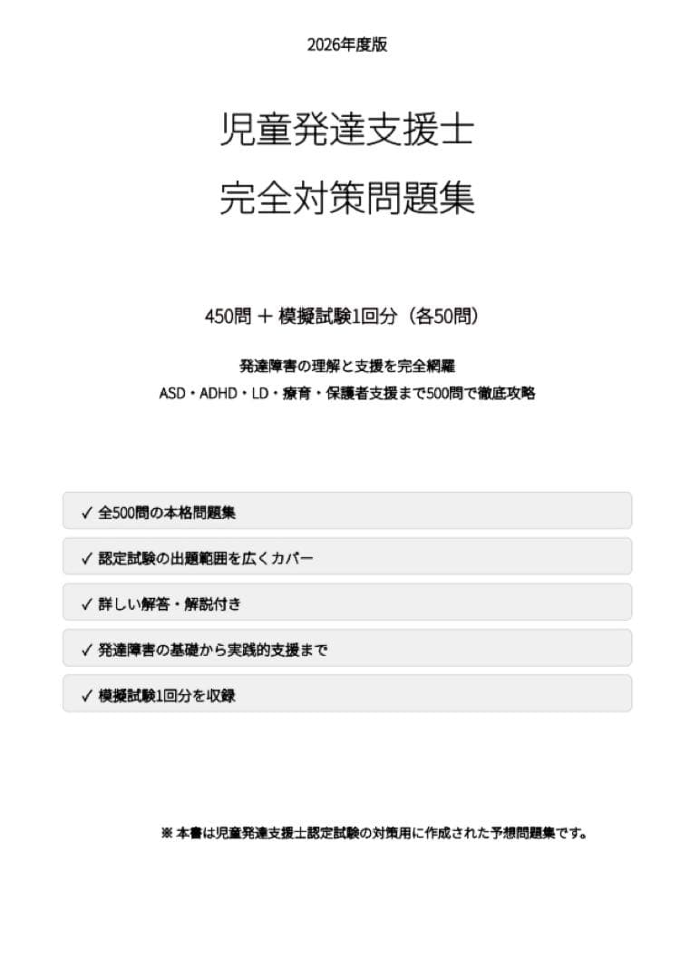 【自動発達支援士】試験対策問題集500問 解答解説付き