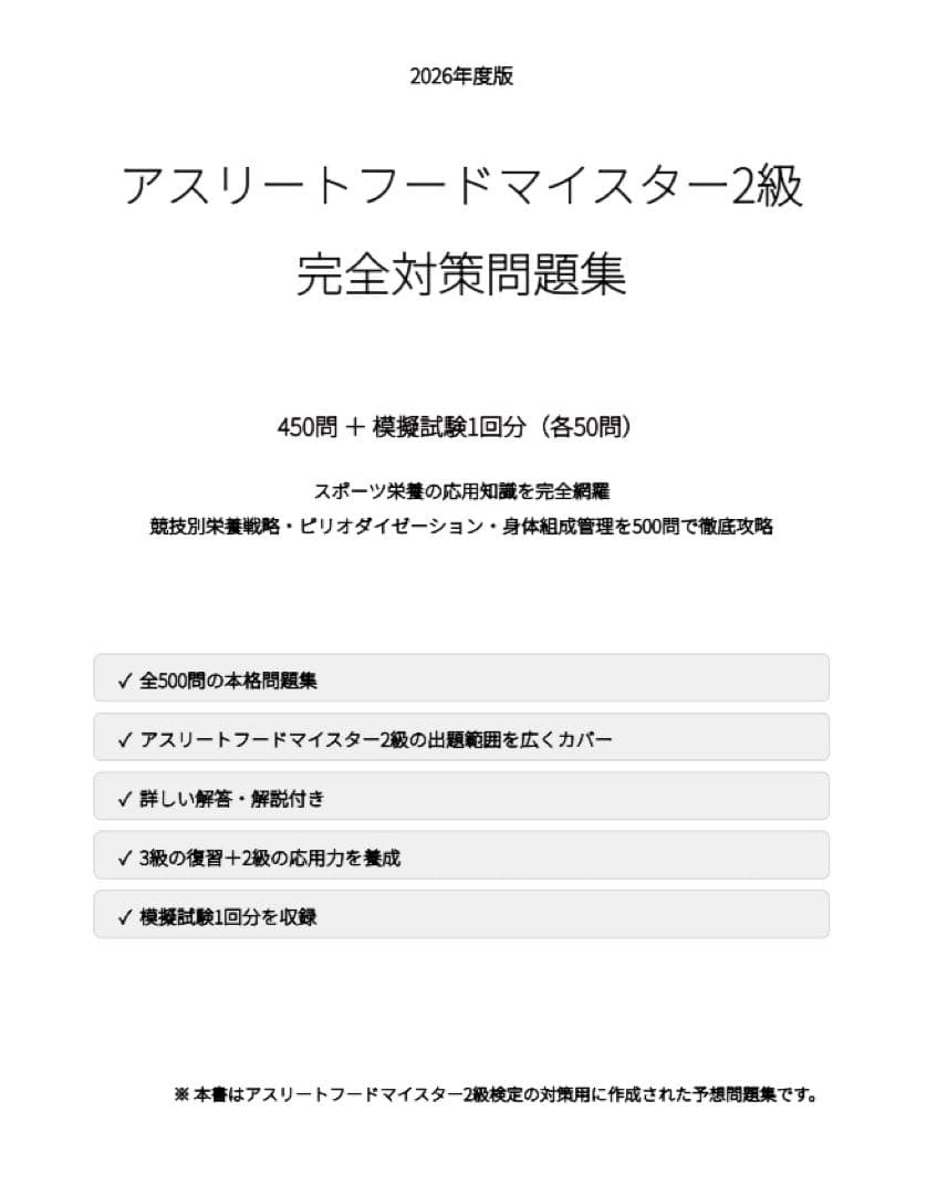 【アスリートフードマイスター2級】試験対策問題集500問 解答解説付き