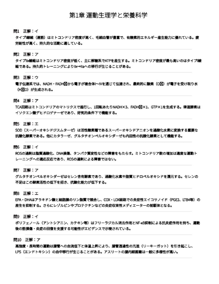 【アスリートフードマイスター1級】試験対策問題集500問 解答解説付き