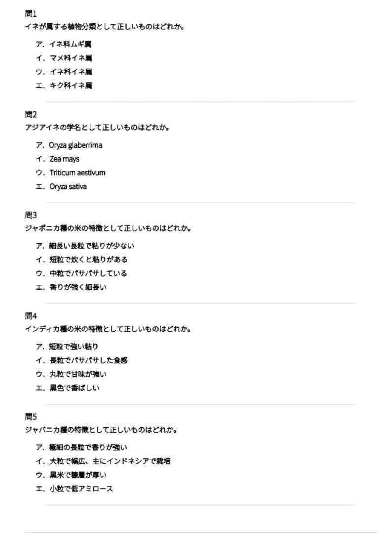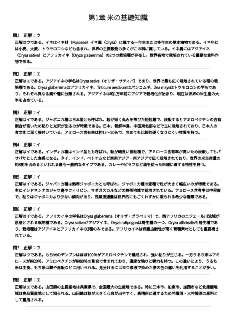 基礎知識の確認から、品種や炊飯の理解、食味評価まで、独学でも学習を進めやすい構成になっています。
