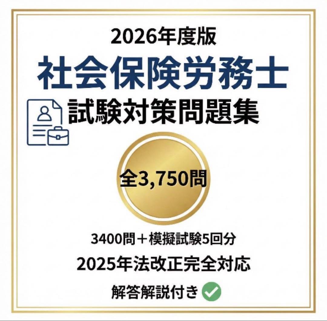 【2026年度版】社会保険労務士試験対策問題集「全3750問」1280ページ現在